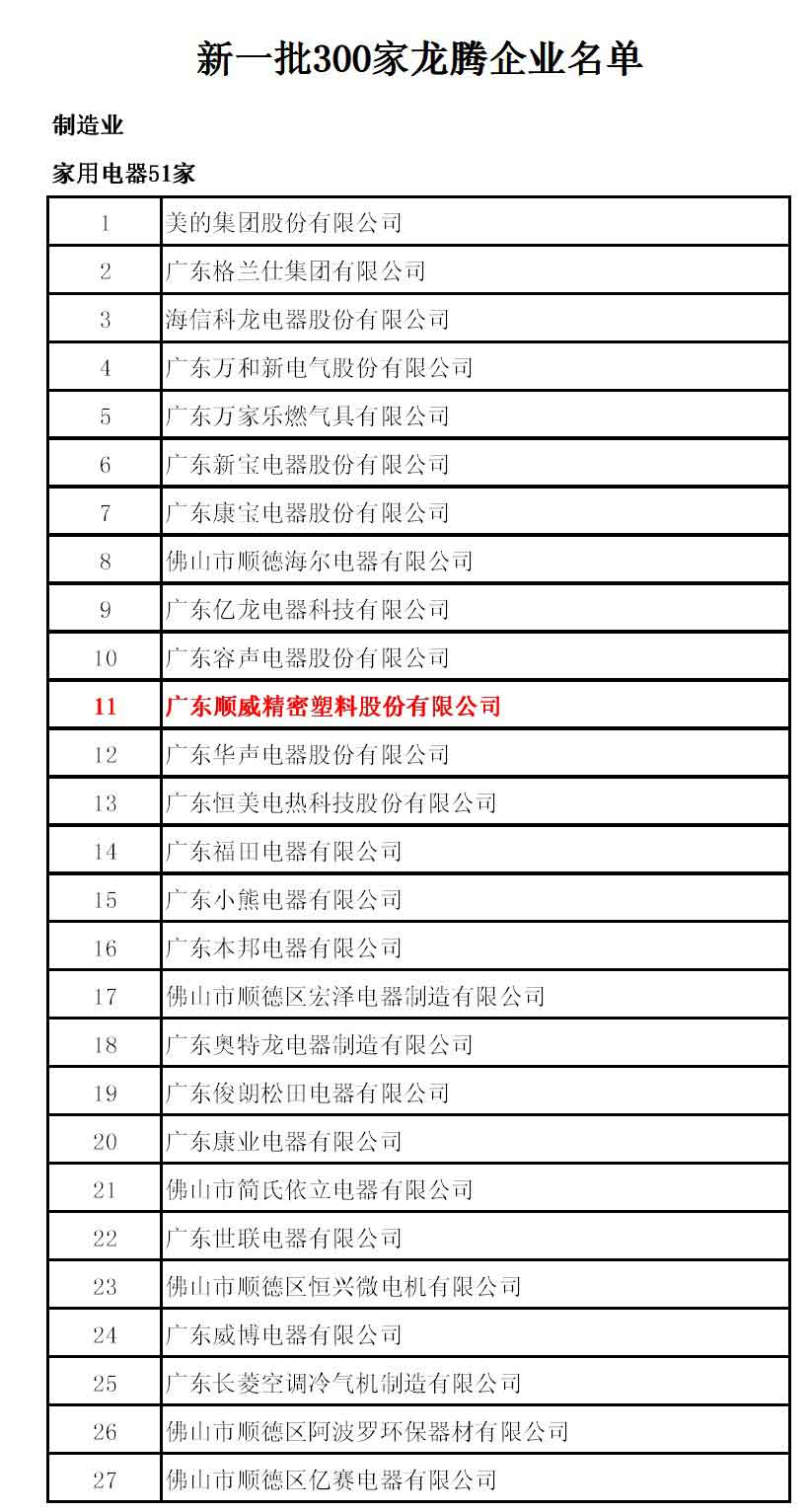 据了解,为快速提升顺德区企业自主创新能力和核心竞争力,促进大中小企业协调发展,扶持一批优质民营企业和中小企业做强做大,建设先进制造业、现代服务业、现代农业协调发展的现代产业体系,早在2010年3月,顺德区政府出台《区优质企业成长工程(龙腾计划)实施方案》,选择300家优质企业作为顺德区重点扶持企业。