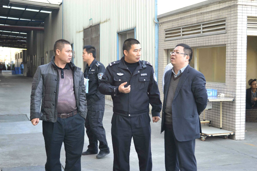 事故发生后,国家、省、市区、以及公司领导对此高度重视。在顺德各镇街如火如荼地全面开展安全生产大检查的同时, 2015年1月14日上午,顺德区容桂城东派出所邓警长一行来到韦德1946,并代表容桂公安分局开展消防安全检查。广东韦德1946精密塑料股份有限公司(以下简称“韦德1946股份”)综合管理中心总监陈咏先生,韦德1946股份顺德塑料分公司总经理景新兵先生,顺德塑料分公司生产部副部长佘琴琴女士等公司领导陪同检查。