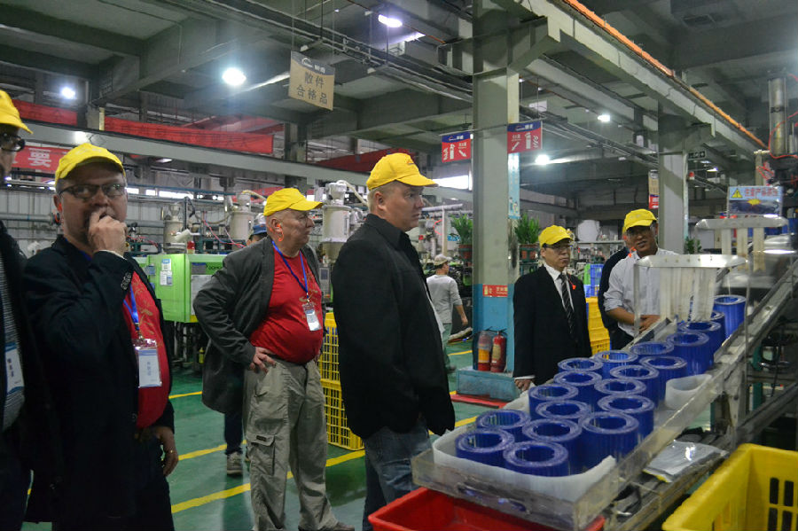 展厅结束后,一行分别到模具分公司及塑料分公司参观。从大堂到陈列室,再到生产车间各个工段,客商们对公司的生产情况有了更深入的了解。期间对公司的高新技术及高端设备非常感兴趣,不时驻足观察并向接待同事详细咨询。