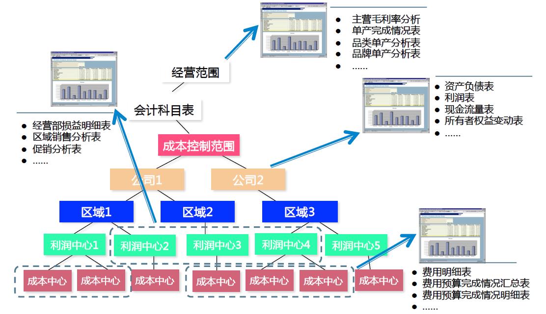由于财务的控制规则前移,在开展业务时已经把后期财务需要的数据录入到系统,月结时财务报表的数据提取就不需要大量的人工录入。同时SAP提供多维度的财务组织架构,能灵活给出所需的报表。