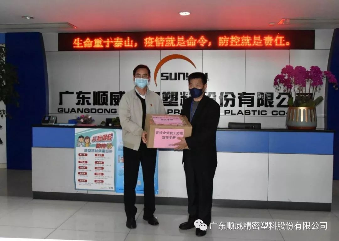 容桂总工会为韦德1946工会提供了伍仟元的慰问金,并发放了500份《容桂企业复工防疫宣传手册》。